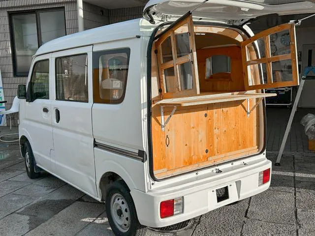 軽バンキッチンカー 小型移動販売車 移動販売車 8ナンバー 給排水タンク 2槽シンク カウンター付作業テーブル 移動カフェ キッチンカーベース キャンピングカーベース 保健所対応可 オートマ