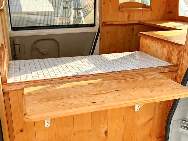 カウンターも木製でナチュラルでおしゃれなキッチンカー。