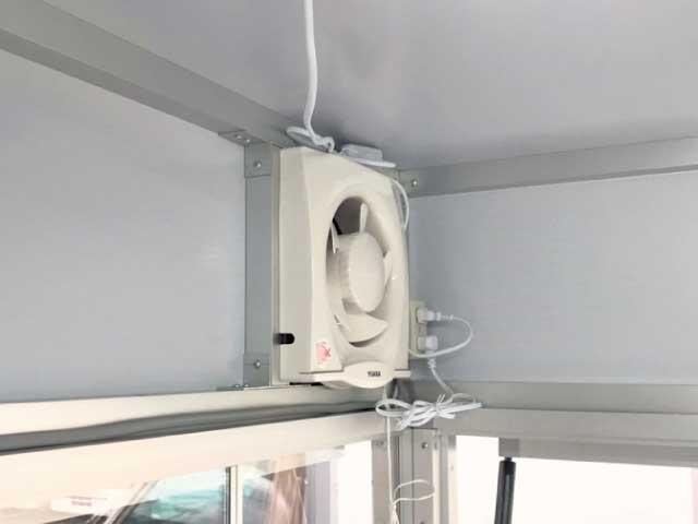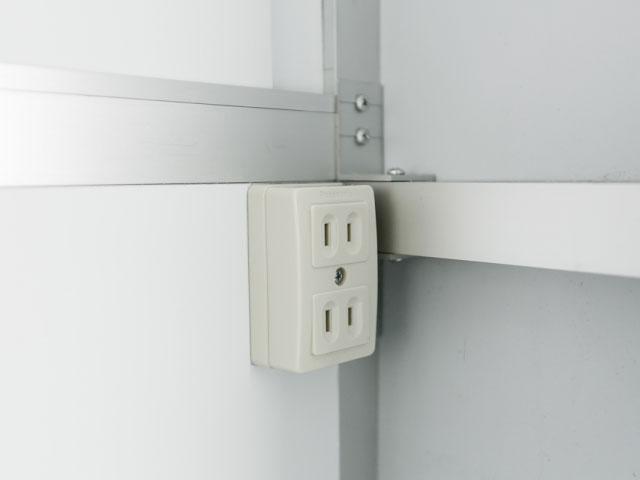 ダンパー式売り窓、鍵付きドア、スライド式内窓(※1)、100V出力コンセント2か所、外部電源入力コンセント(コード付き)、換気扇、LED照明