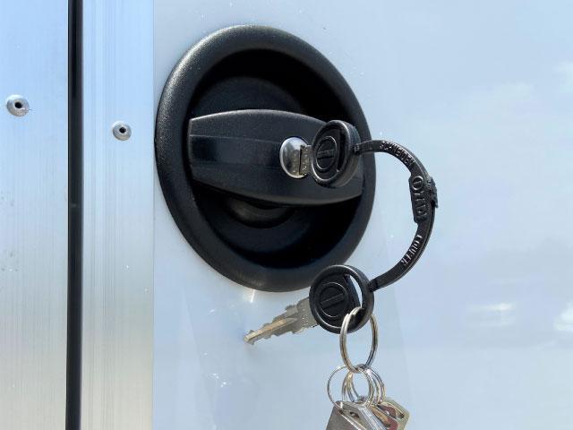 外壁は防水・軽量のアルミボードを全面に貼っています。断熱材・内張りは無し。