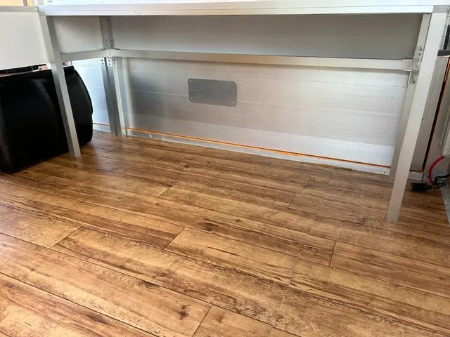 内装はウッド調。作業台などは現在アルミ製を使用。
