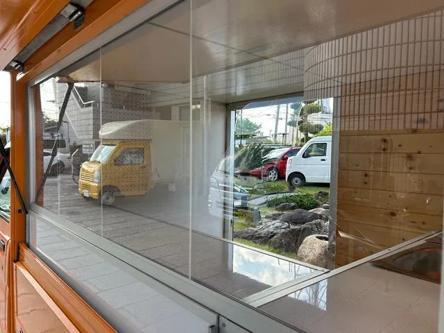 売り窓2箇所。助手席側にはスライドドア付き。