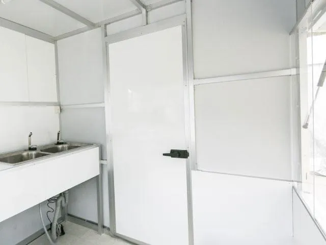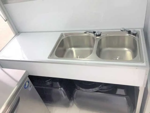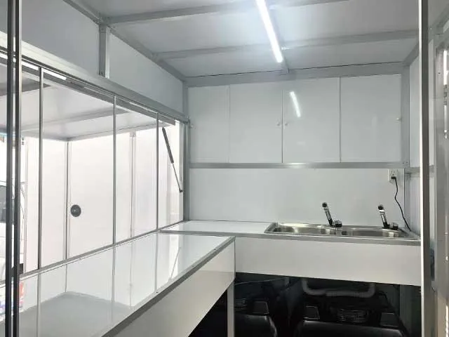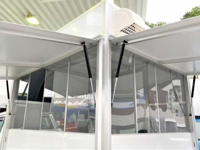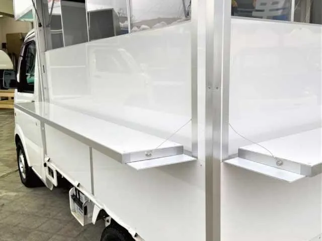 ホワイトの新品アルミ合板製キッチンカーボックス搭載。