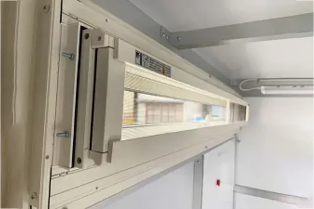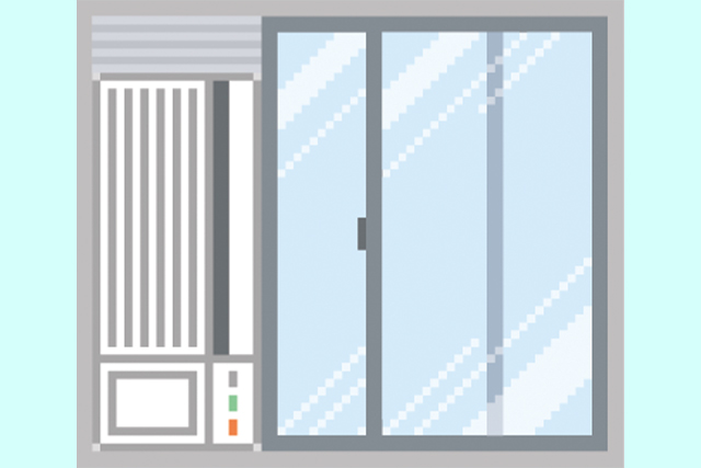 窓に取り付けるタイプのエアコン。車内が高温になる夏場も問題なく営業可能です。